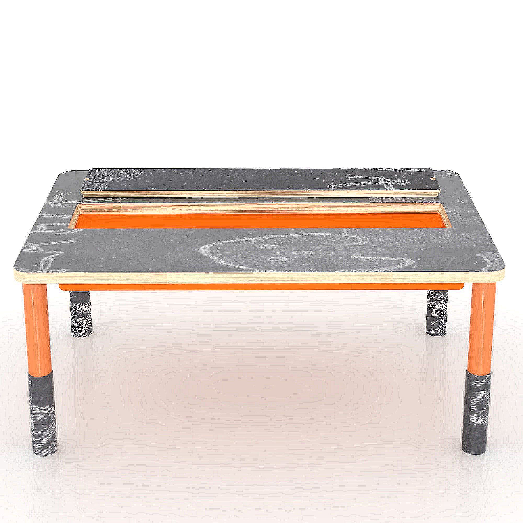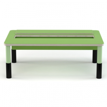 Stoliki przedszkolne 4-6-8 osobowe o regulowanej wysokość od 46 do 58 cm. Stelaże wykonane z rur i profili stalowych malowanych proszkowo. Blat sklejka wykończona laminatem z blatem jednolitym lub pojemnikiem na klocki lub przybory rysunkowe z zamykaniem.
